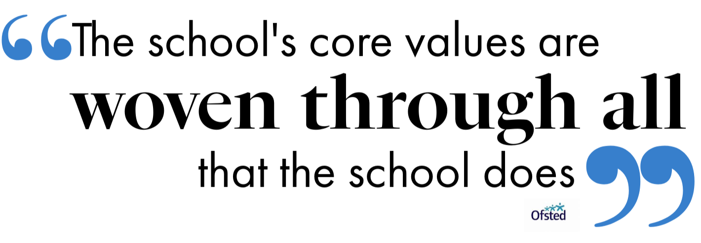 Our school values along with the 'British Values' (see the link at the bottom of the page) underpin our teaching and learning and provide an environment which prepares our pupils to be confident, respectful and happy citizens.